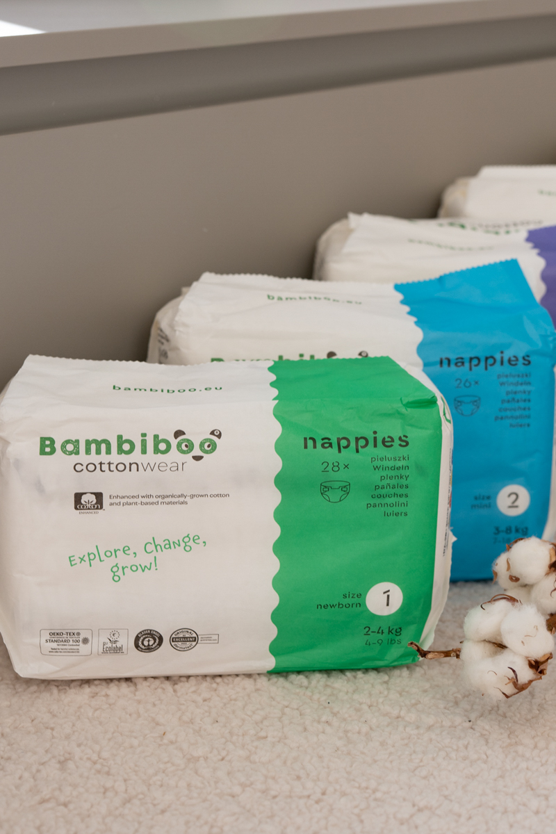Rozmiary ekologicznych jednorazowych pieluszek Bambiboo wzbogaconych bawełną organiczną: